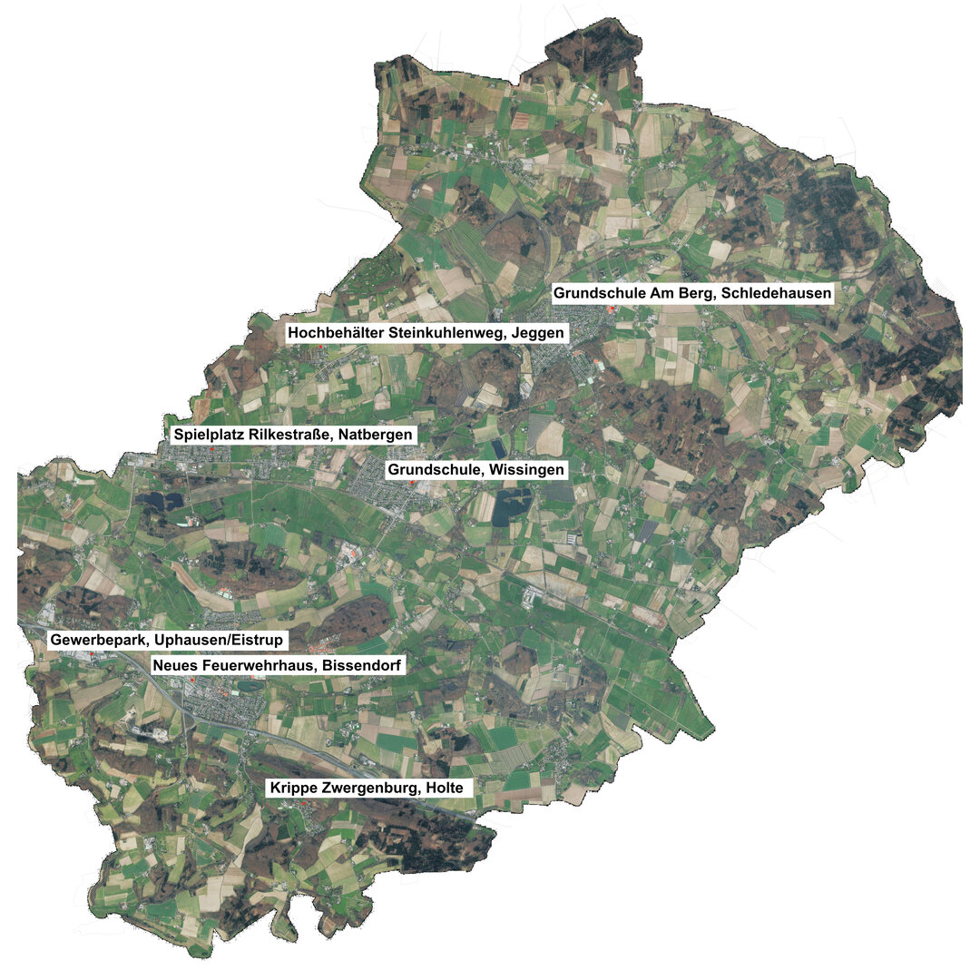 In Kürze startet der Landkreis Osnabrück den Aufbau eines ergänzenden Alarmnetzes für den Fall von Katastrophenlagen bzw. katastrophenähnlichen Vorkomnissen. Dies sind die sieben geplanten Sirenen-Standorte in der Gemeinde Bissendorf.