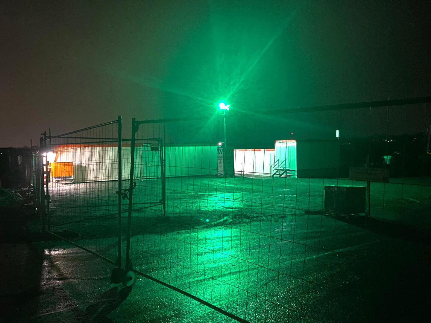 Gleichzeitig wurde von Seiten der Bauleitung erfolgreich das Gespräch mit den Anwohnern gesucht. Bei der Beleuchtungsfarbe „Grün“ handelt es sich demnach um die unterstützende Beleuchtung der Baustellenüberwachungskamera. Hier wurde bereits im Einvernehmen mit den Anliegern der Beleuchtungswinkel verändert. Diese Beleuchtung ist aus Sicherheitsgründen die ganze Nacht in Betrieb.
