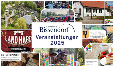 Im neuen Flyer Veranstaltungen 2025 bündelt die Gemeinde Bissendorf Highlights und regelmäßige Freizeitangebote. Collage: Gemeinde Bissendorf/Friesen