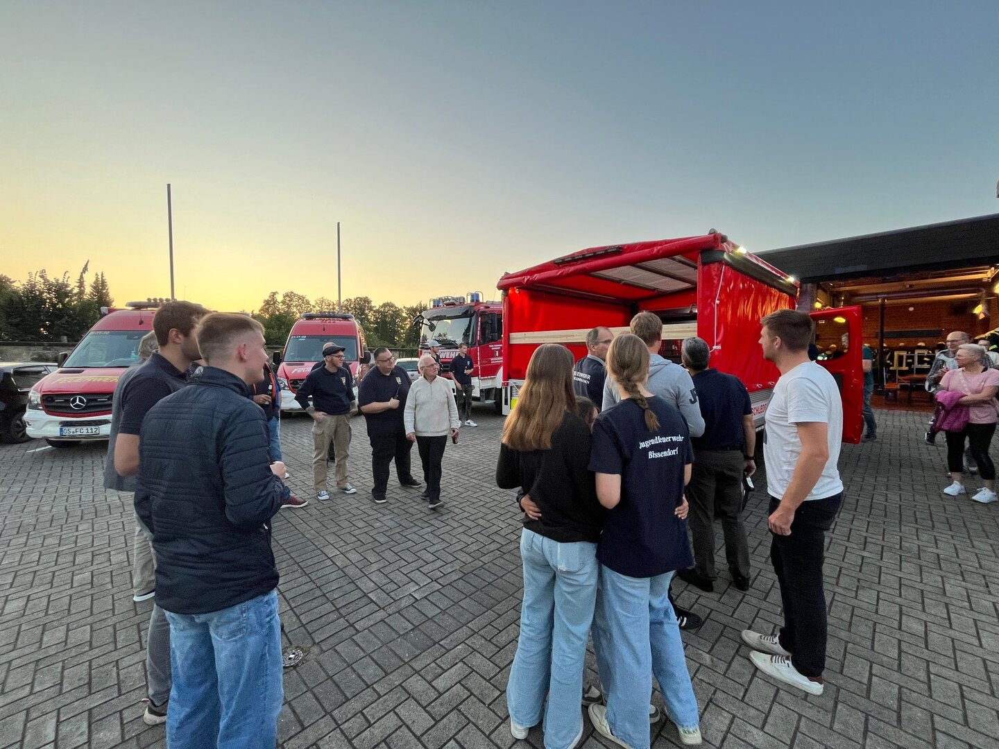 Nach der Ankunft an der Einsatzzentrale in Schledehausen wurde das MTW ausgiebig von den Kameradinnen und Kameraden und den Gästen inspiziert und sein Empfang bei Bratwürstchen und Kaltgetränken gefeiert.