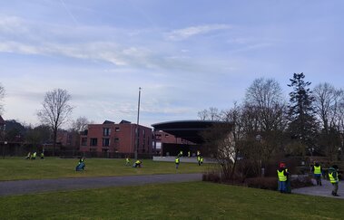 Mit dabei: Der gesamte zweite Jahrgang der Schule am Berg in Schledehausen (Einsatzgebiete: Waldgelände und Kurpark) und die AWO-Kita Löwenherz (Einsatzgebiet: Wissinger Mark). Im Rahmen eines Müllprojektes durchstreiften ein paar Tage zuvor auch die „Bärenfreunde“ die Straßenzüge und stellten fest, dass es im Neubaugebiet erst wenige Mülleimer gibt.