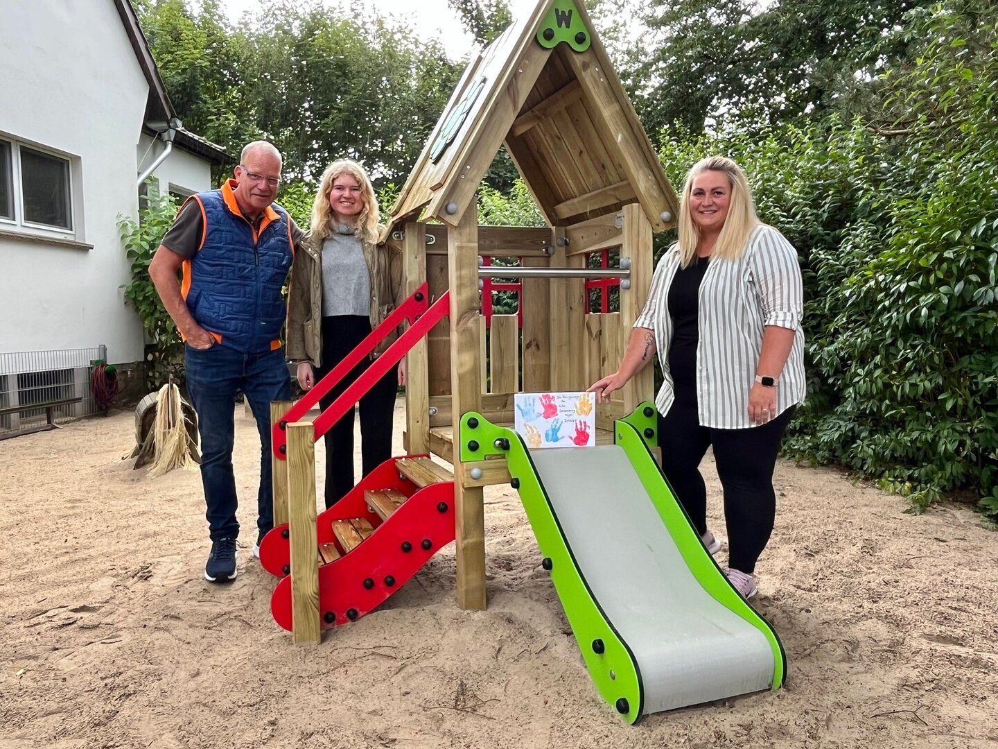 In der Kita Schelenburg konnte vor der Sommerpause eine neue Matschanlage eingeweiht werden. Ein Spielhäuschen wurde jetzt ebenfalls aufgebaut.
