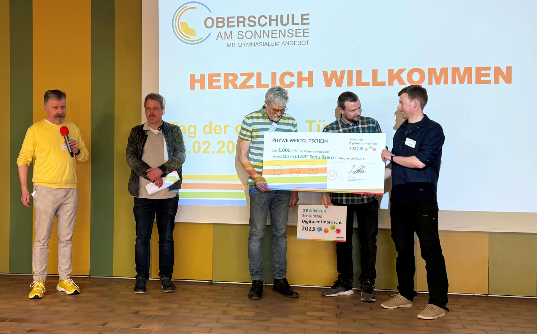 Im Rahmen des Tages der Offenen Tür am 27. Februar 2026 erhielten Fachlehrer Patrick Kreutzmann und sein Team einen PHYWE-Warengutschein über 1000 Euro, sowie eine curricuLAB-Schullizenz. Die neue Lehr- und Lernplattform sorgt für einen schnellen und unkomplizierten Einstieg in den digitalen Unterricht.