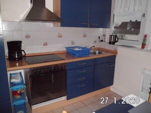 Elektroherd mit Ceranfeld, Umluftbackofen, Kaffeemaschine, Wasserkocher, Toaster und vieles mehr. Eine gemütliche Sitzecke ist ebenfalls vorhanden. Badezimmer mit Wanne und Duschabtrennung.