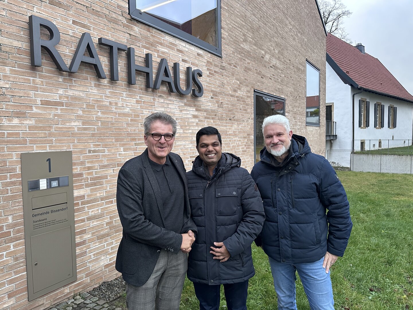 Seit dem 1. Dezember 2024 hat die katholische Kirchengemeinde Bissendorf wieder einen Pastor. Andrews Fancis wurde passend vor dem Weihnachtsfest in der Kirche am Rathaus eingeführt. Jetzt hat sich der 38-jährige gemeinsam mit Gemeindereferent Thomas Steinkamp beim „Nachbarn“, Bürgermeister Guido Halfter, im Rathaus vorgestellt.