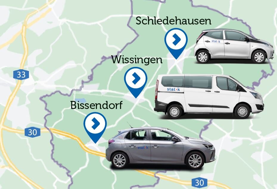 Seit geraumer Zeit können Bürgerinnen und Bürger aus der Gemeinde Bissendorf vom neuen Carsharing-Angebot profitieren. Drei unterschiedliche Fahrzeuge des Anbieters stadtteilauto stehen derzeit an drei verschiedenen Standorten im Gemeindegebiet zur Verfügung, davon 1 E-Fahrzeug (Opel Corsa-e), ein weiterer Kleinwagen (Toyota Aygo) und 1 Sieben-Sitzer (Toyota Proace Verso). Ein Carsharing-Fahrzeug kann bis zu 20 private PKW ersetzen und ist für jeden geeignet, egal ob Fahranfänger, Familien, die die Fahrzeuge als Zweitwagen benutzen oder Personen, die das Fahren mit einem E-Auto testen möchten. Auch Vereine und Unternehmen zählen zur Zielgruppe.