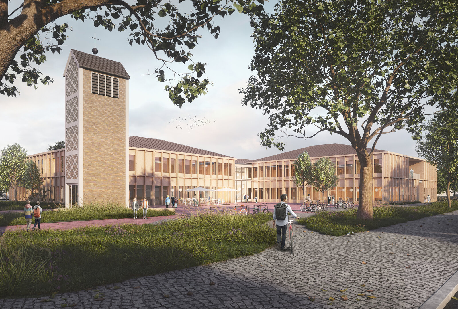 Das Architekten- und Ingenieursbüro pbr Planungsbüro Rohling AG, dessen Entwurf für die neue Grundschule in Wissingen bereits vor etwa einem Monat die Fachjury des Preisgerichts im Architektenwettbewerb überzeugt hatte, steht jetzt als Sieger des Verfahrens fest. Das teilt die Verwaltung nach Abschluss der Zuschlagsverhandlungen mit. Der Entwurf des Teams um Architekt Norbert Althoff sieht auf dem Gelände der bisherigen katholischen Kirche einen dreiteiligen Gebäudekörper vor. Nachhaltige Baumaterialien wie Holz, sowie ein flexibel strukturiertes Raumkonzept bilden das Zentrum des Siegerentwurfs.