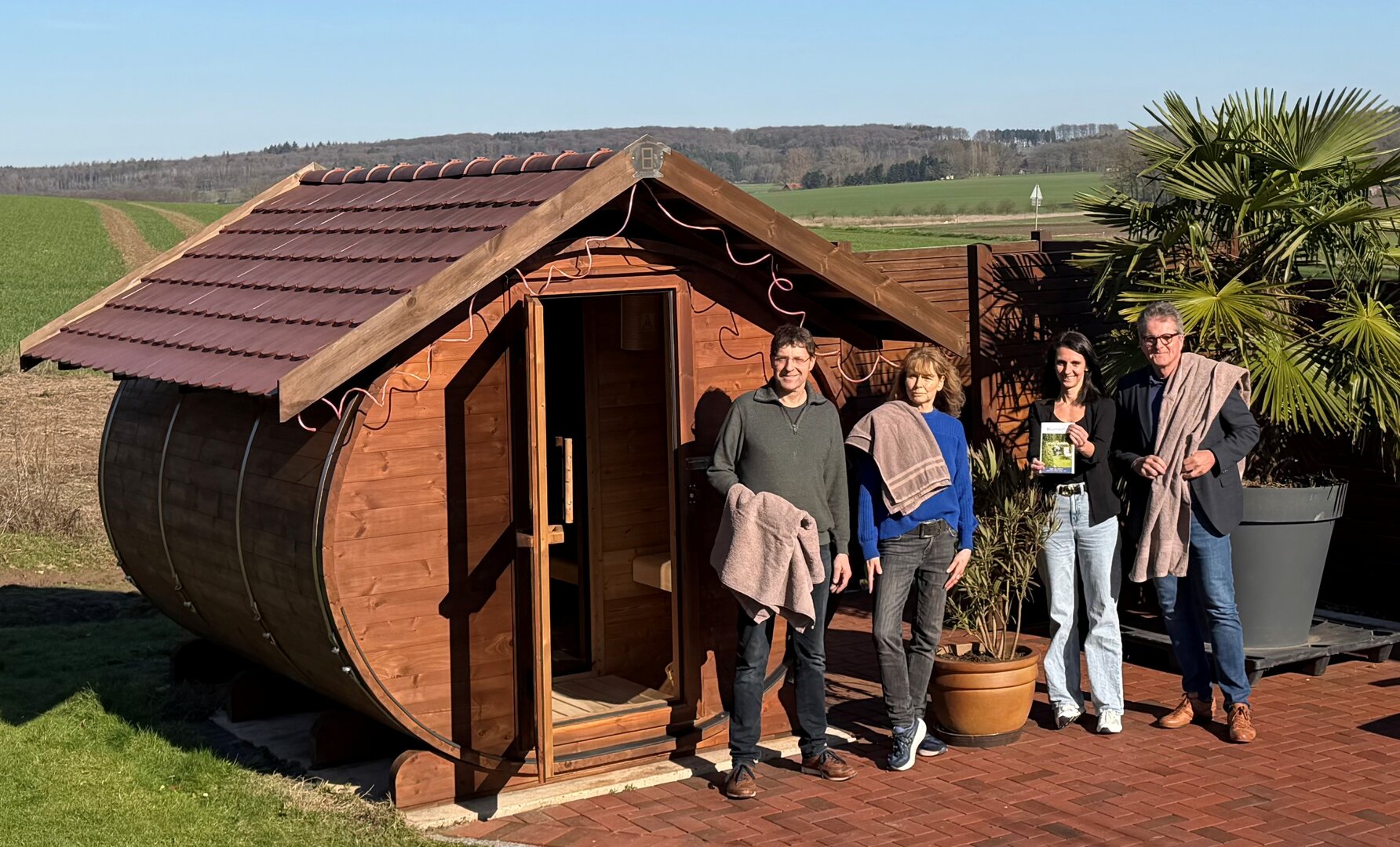Auf Hof Ossenbrock stellten Heiner und Margret Meyer, Sachbearbeiterin Sabrina Henne und Bürgermeister Guido Halfter das neue Gastgeberverzeichnis der Gemeinde Bissendorf vor.
