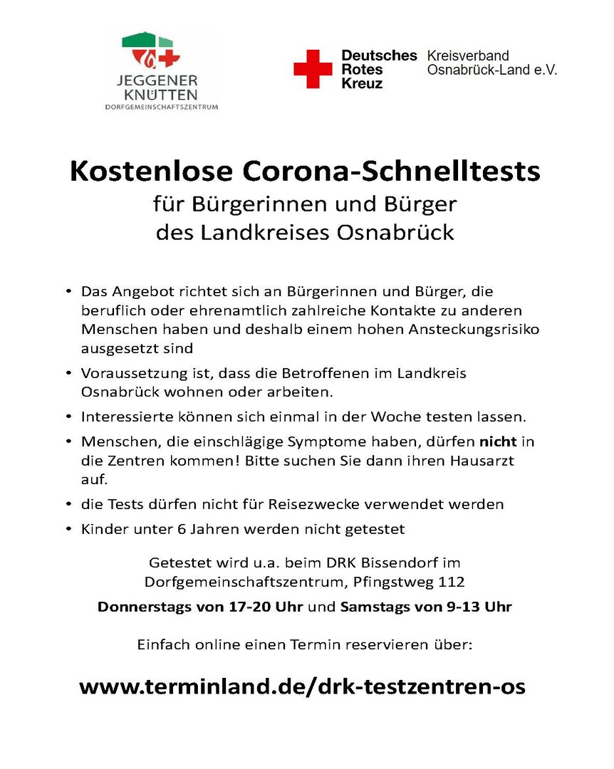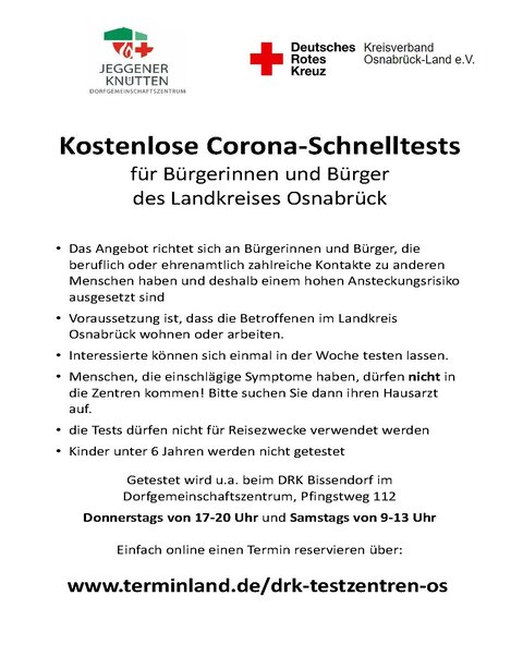 Informationen zu den weiteren Testzentren im Landkreis Osnabrück finden Sie in der Pressemitteilung des Landkreises unter folgendem Link: