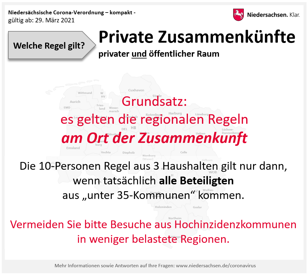 Niedersächsische Verordnung über Maßnahmen zur Eindämmung des Corona-Virus SARS-CoV-2 (Niedersächsische Corona-Verordnung) - gültig ab 29. März 2021 (mit markierten Änderungen)