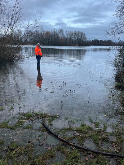 Hydroingenieur Michael Kipsieker beim Rundgang im Linner See. Foto: Gemeinde Bissendorf Kollorz©Gemeinde Bissendorf Kollorz
