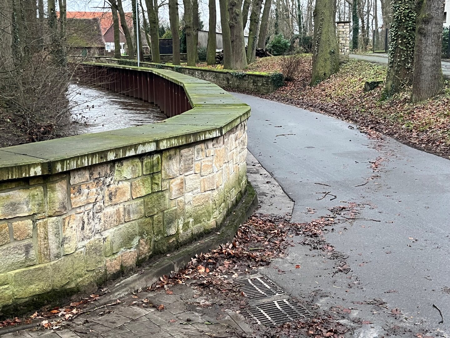 Die Spundwand in Bruchsteinoptik schützt die Straße "An der Wierau" an der Engstelle des Flusses. Foto: Gemeinde Bissendorf Kollorz©Gemeinde Bissendorf Kollorz