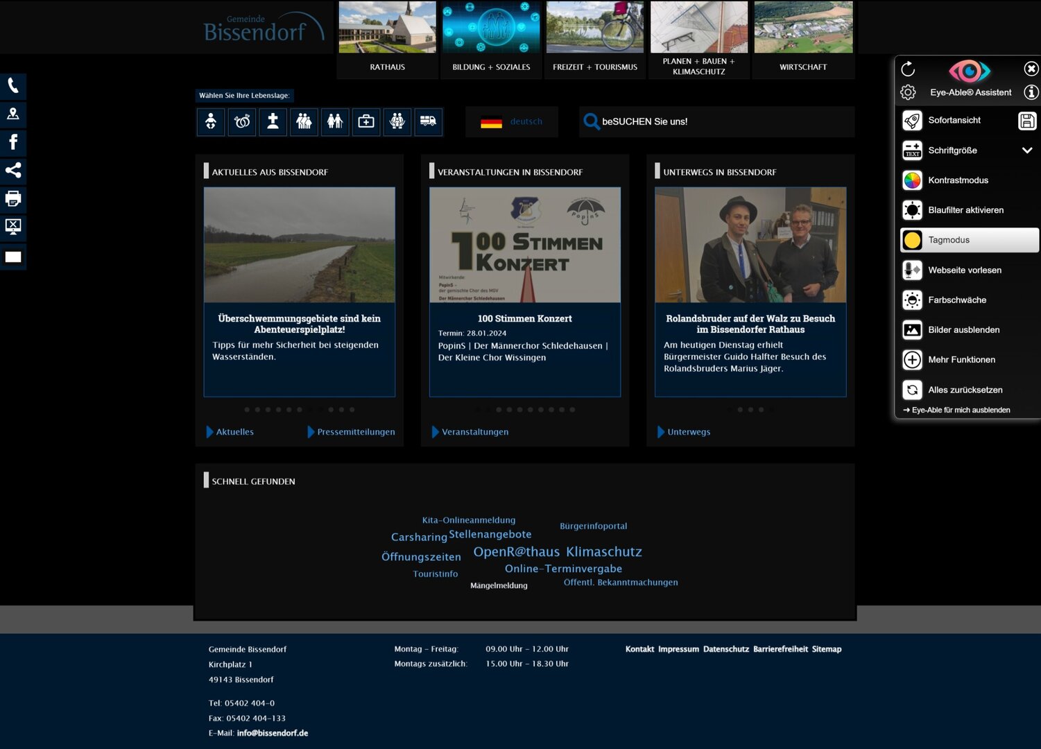 Oben rechts findet man den Button für die Assistenzsoftware "Eye-Able".©Gemeinde Bissendorf