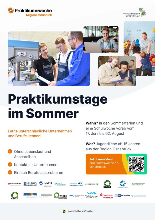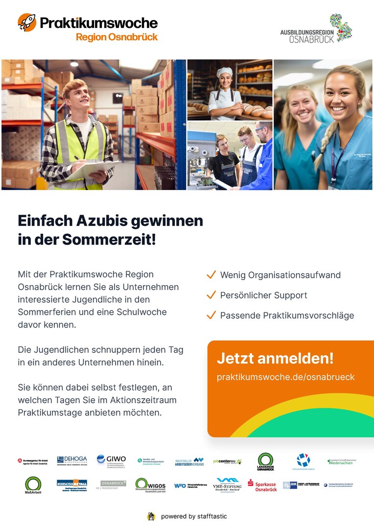 Praktikumswoche Region OsnabrückDer Wirtschaftsförderung des Landkreises Osnabrück organisiert diesem Jahr bereits zum zweiten Mal mit weiteren Partnern die Praktikumswoche Region Osnabrück. PRESSEMITTEILUNG der WIGOS Wirtschaftsförderungsgesellschaft Osnabrücker Land mbH
