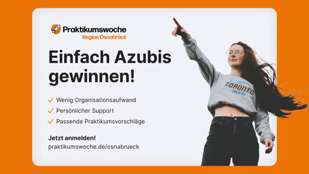 Nähere Informationen sowie ein kurzes Erklär-Video finden Sie unter www.praktikumswoche.de/osnabrueck/unternehmen. Dort finden Sie auch eine Übersicht von Unternehmen aus der Region, die sich bereits für die Praktikumswoche angemeldet haben. Für Fragen bietet das Team der Praktikumswoche vor Beginn noch zwei Online-Sprechstunden an. Die Termine finden Sie ebenfalls auf der Website.