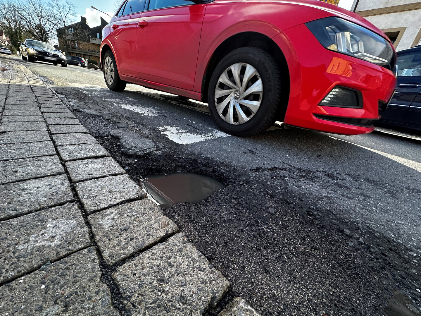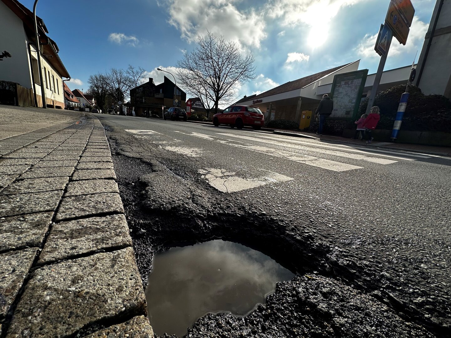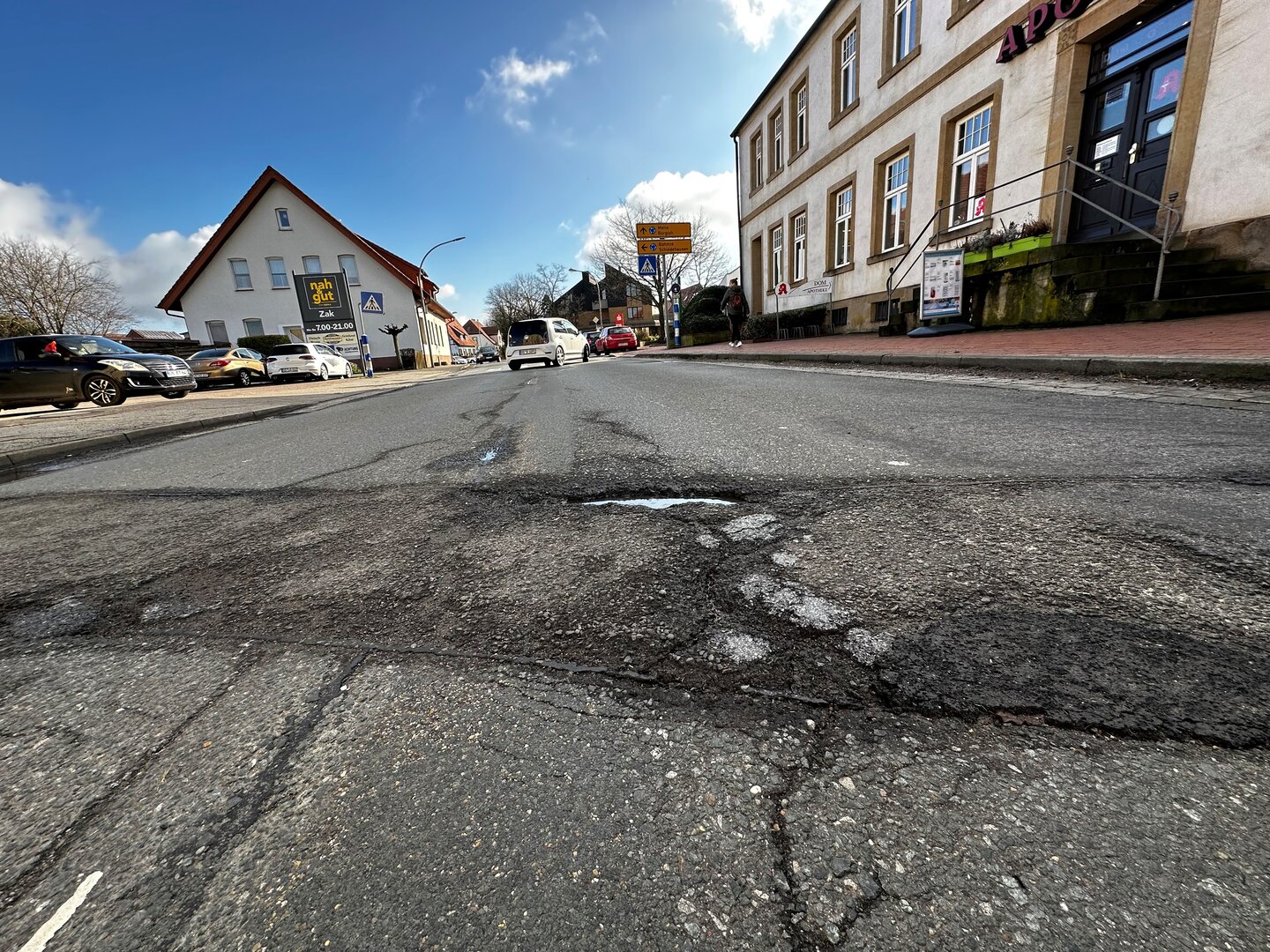 Gleichzeitig beschwerten sich immer mehr Bürger über den Zustand der Straße, der an einigen Stellen tatsächlich besorgniserregende Formen angenommen hatte. So hatten sich beispielsweise vor der Zufahrt des Supermarkts oder der Pizzeria größere Löcher gebildet, die nicht nur für eine deutliche Lärmbelästigung sorgten, sondern mittlerweile eine Gefahr für Fahrradfahrer und Autos darstellten.