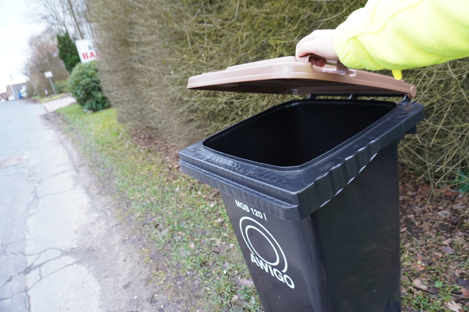 Pro Tour kontrollieren die AWIGO-Teams rund 700 braune Mülltonnen und verteilen nach Bedarf gelbe oder rote Tonnen-Anhänger: Der gelbe Anhänger kommt bei leichten Verunreinigungen zum Einsatz und weist auf Störstoffe im Behälter hin. Eine Leerung der Mülltonne findet trotzdem statt. Der rote Tonnenanhänger hingegen zeigt stark verschmutzten Bioabfall an, die Müllabfuhr leert in diesem Fall nicht.