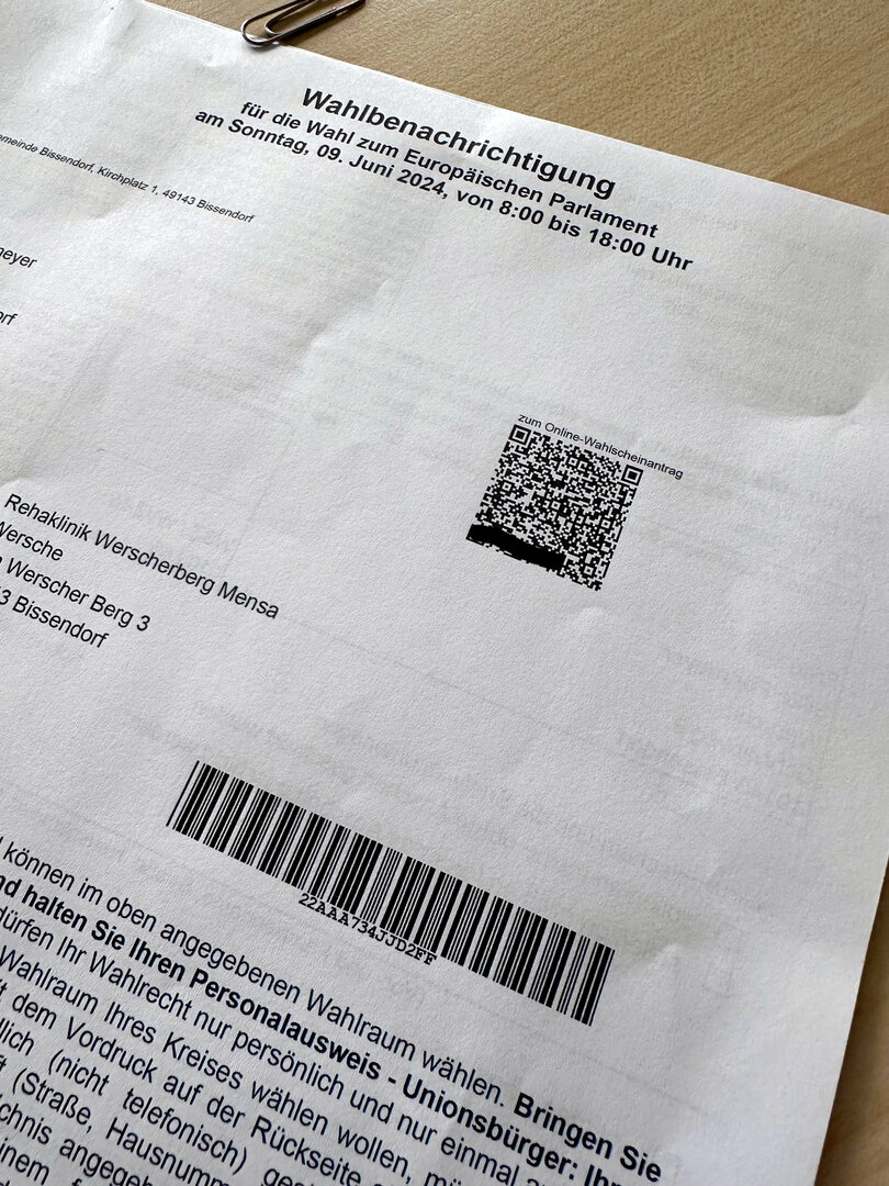 Mittels QR-Code auf der Wahlbenachrichtigung können ganz einfach Briefwahlunterlagen online beantragt werden.