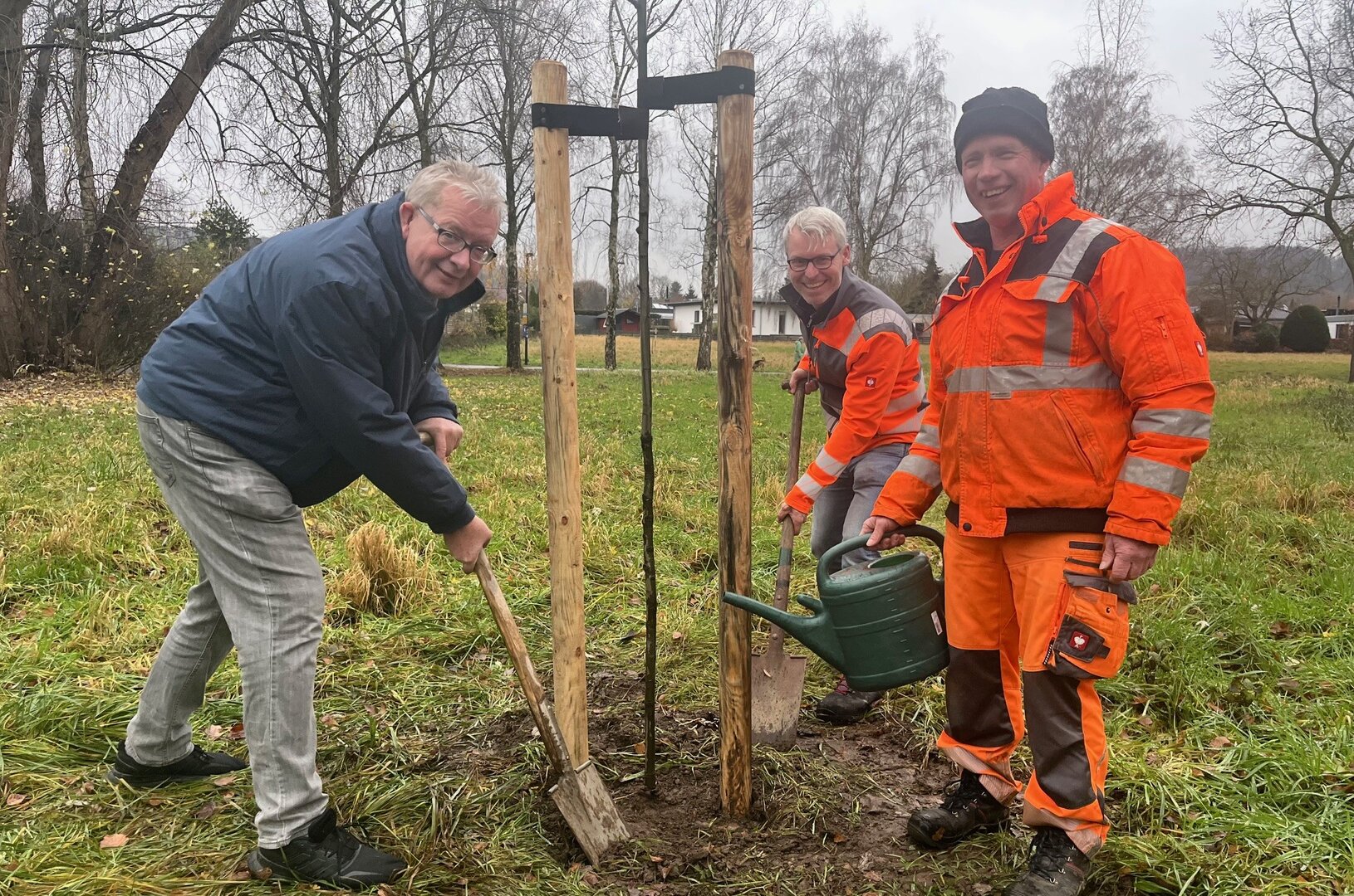 Bernd Stegmann, Alexander Kursawe und Harald Kämper freuen sich, zwei weitere Exemplare vom "Baum des Jahres" am Sonnensee zu pflanzen.