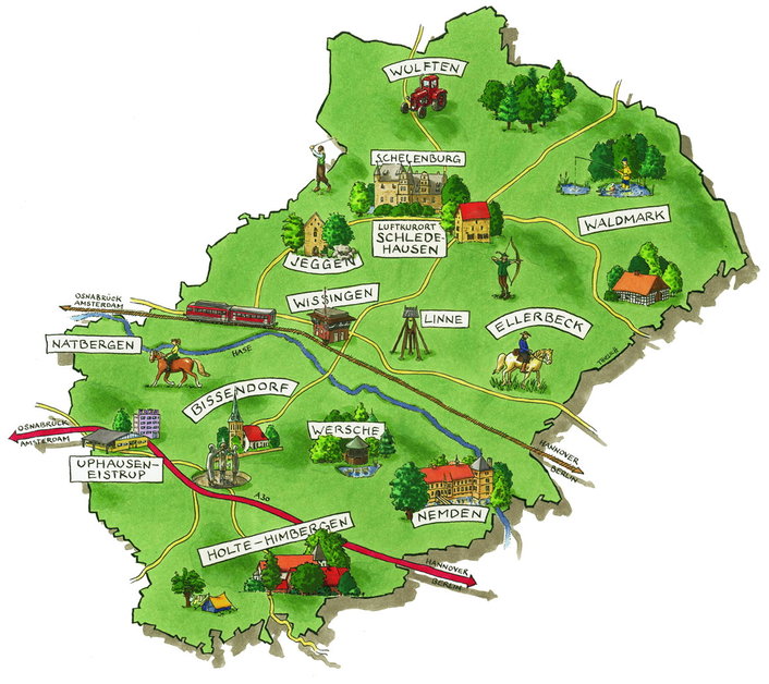 mit den Ortsteilen Bissendorf, Ellerbeck, Holte-Himbergen, Jeggen, Linne, Natbergen, Nemden, Schledehausen, Schelenburg, Uphausen-Eistrup, Waldmark, Wersche, Wissingen und Wulften