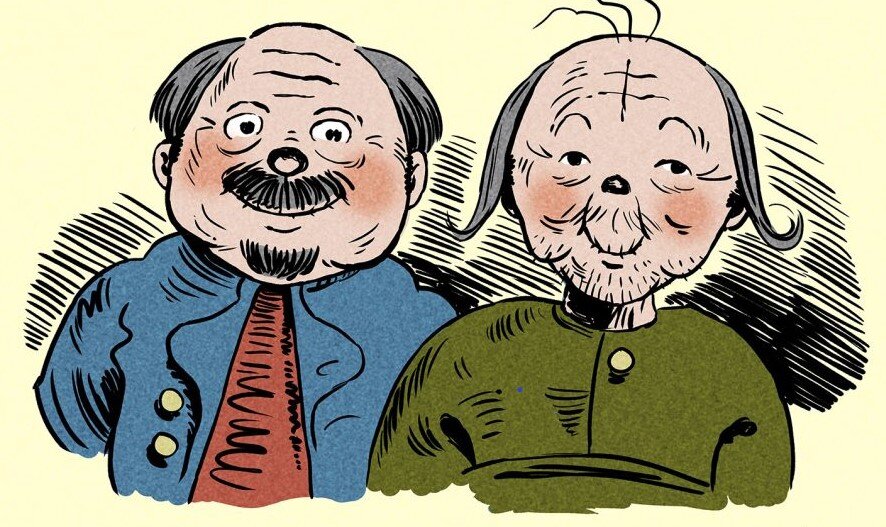 Inzwischen sind die immerwährenden Lausbuben über 160 Jahre alt und immer noch überaus agil und wortgewandt. In all der Zeit, über die Dekaden hinweg, haben sie nie aufgehört Unfug zu treiben: in Gaststätten und Einkaufshäusern und auf Gemeindefesten. Sogar auf dem Friedhof, bei der Bundeswehr und natürlich in ihrer Seniorenresidenz. Bisweilen musste auch so manche Prominenz für ihren Schabernack herhalten. Regelmäßig treffen sich die beiden Freunde auf einer Bank im Park und sind stets bereit von ihrem bewegten Leben zu berichten.