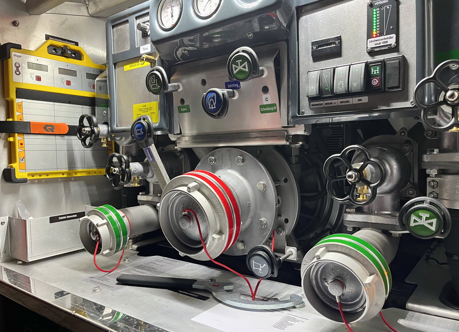 Im Heck des LF KatS befindet sich die große Pumpe (10 bar bei 2.000 Liter Wasser in der Minute) mit Zubehör. Fotos: Gemeinde Bissendorf / Kollorz